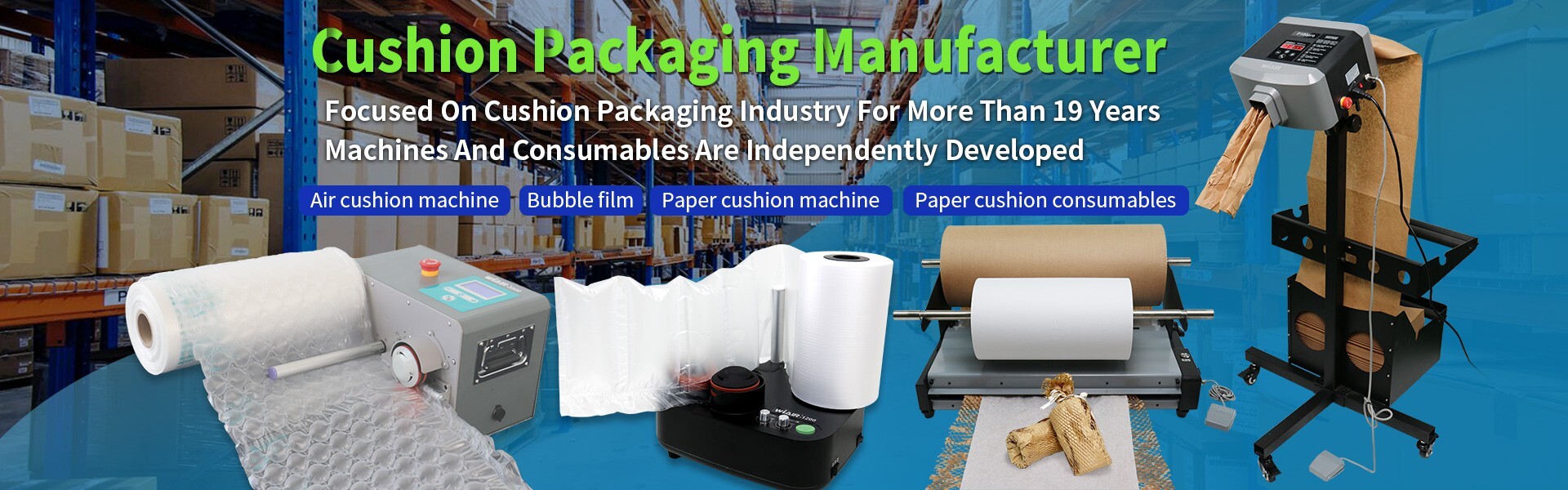 WiAIR was founded in 2002 focuses on the R&D, production and sales of air cushion packaging machines and consumables.